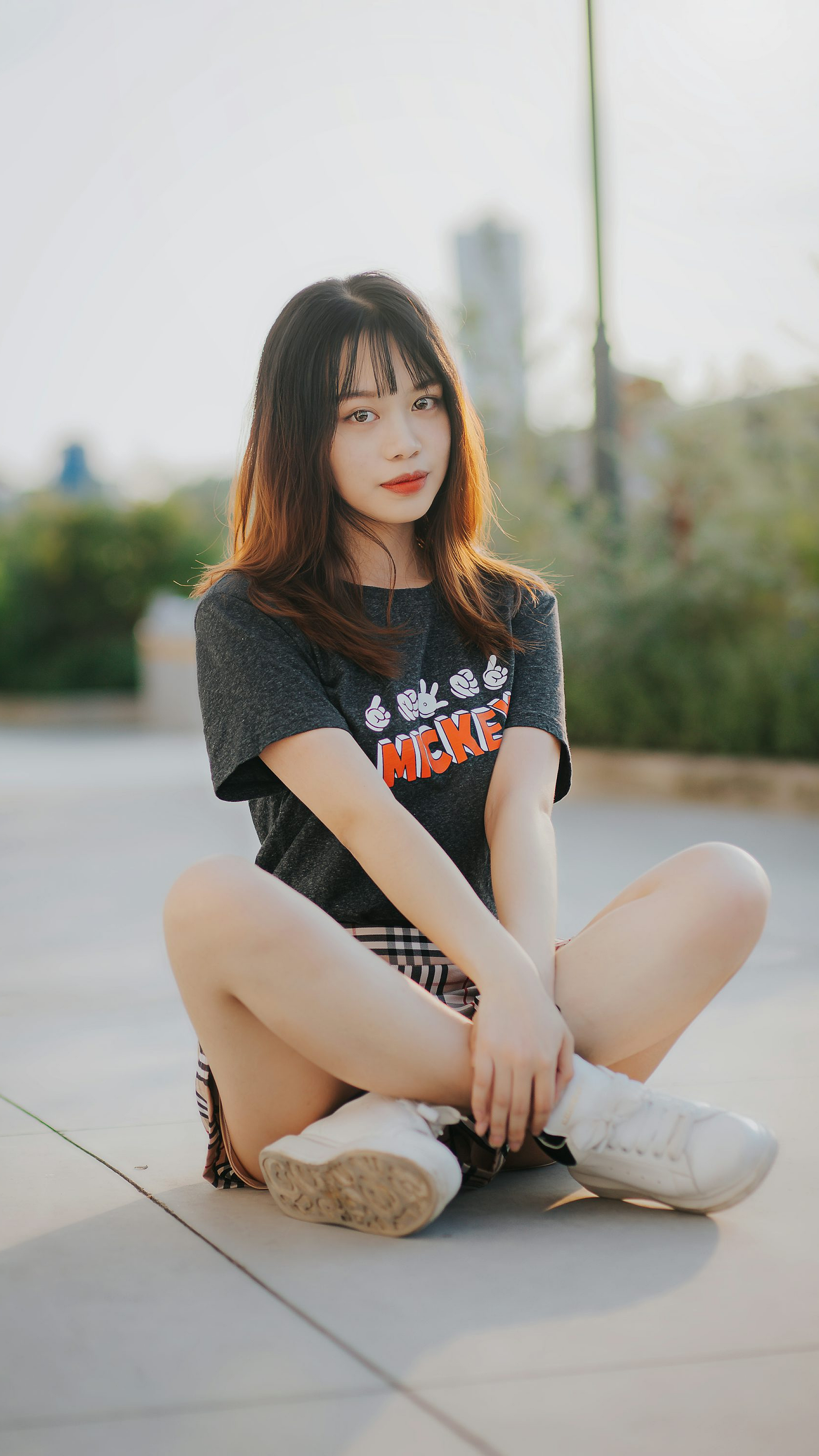 woman, gray sweater, white pants, concrete floor, sitting, gray, floor, fashion, minimalism, simple, casual, relaxed, portrait, lifestyle, model